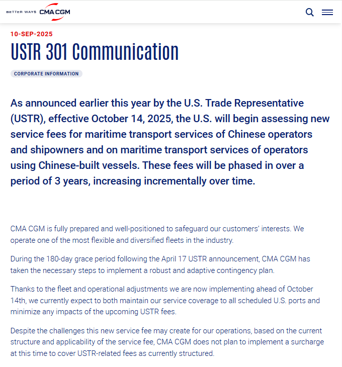 中远海运表示,尽管该项收费可能会对公司运营带来一定挑战,但中远海运集运始终对美国航线网络服务充满信心,并坚持投入稳定的运力、保持稳定的服务品质,持续为客户提供可靠、安全且高质量的物流解决方案。